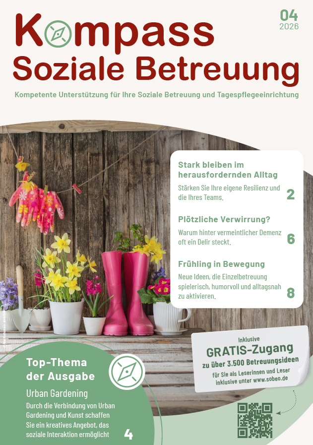 „… im Bereich Altenbetreuung und Demenz unterstützt mich das Portal Soziale Betreuung Online sehr effizient: die Wochenpläne geben mir wertvolle Vorschläge und tolle Tipps an die Hand, um den Alltag zu strukturieren. Die sonstigen Informationen rund um das Thema Betreuung sind ebenfalls Gold wert: zuverlässig und sehr klar aufgebaut lässt dieses Portal tatsächlich keine Wünsche offen.“