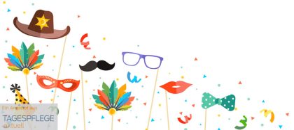 Zum BetreuungsangebotMit diesem heiteren Angebot fördern Sie das Selbstvertrauen Ihrer Gäste. Diese Fotosession wird mit selbst gemachten Karnevalsmasken zu einem heiteren Erlebnis. Wer hat das schönste Fotolächeln?