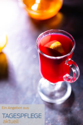 Zum BetreuungsangebotOrangenduft soll eine entspannende und beruhigende Wirkung haben. Auf jeden Fall bietet ein Orangenpunsch wunderbare Geruchs- und Geschmacksanregungen für Ihre Gäste. Sich im Moment wohlfühlen ist das Motto dieser Zeit. Einmal kurz Coro…